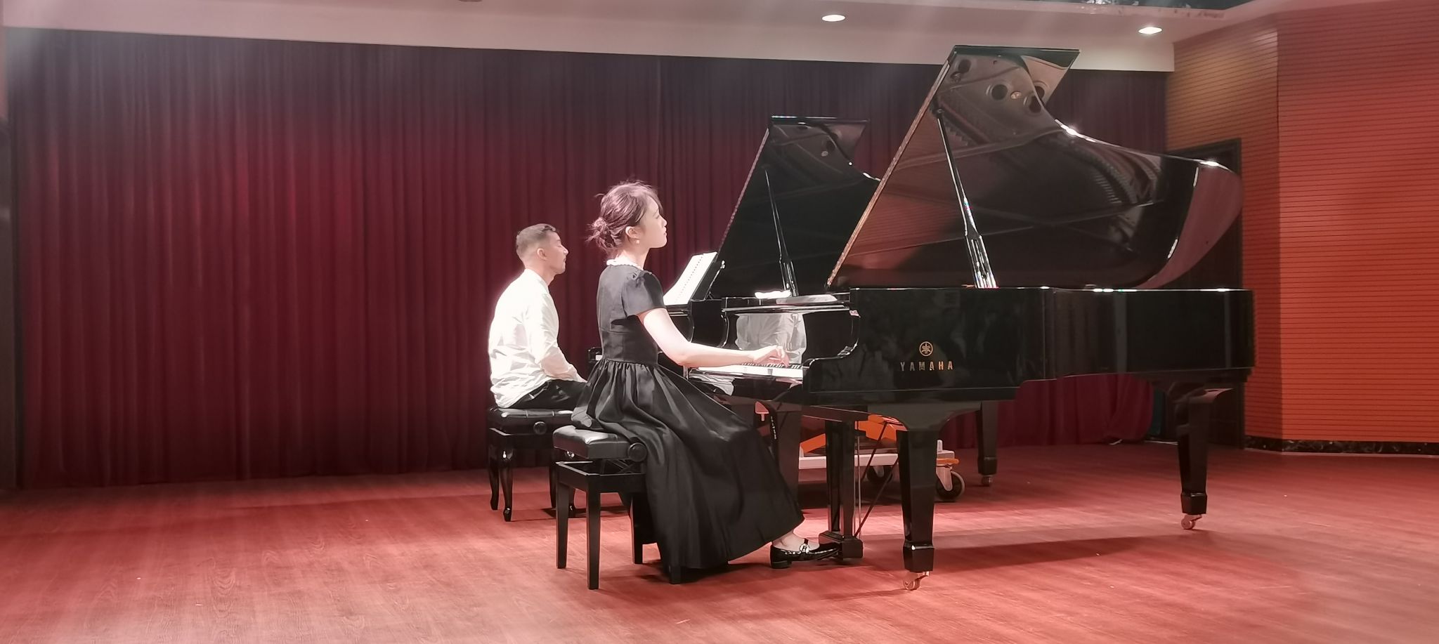 5月7日,伊利亞?索洛維耶夫師生音樂會在德樂樓411音樂廳舉行,音樂會聚焦西方經(jīng)典鋼琴作品。2024級學(xué)生李欣桐以莫扎特《D大調(diào)雙鋼琴奏鳴曲》展現(xiàn)靈動技巧,2023級學(xué)生彭依藝則挑戰(zhàn)了肖邦《e小調(diào)夜曲》與斯克里亞賓《升d小調(diào)練習(xí)曲》兩首高難度作品。外教伊利亞·索洛維約夫以拉赫瑪尼諾夫藝術(shù)歌曲《此處美好》壓軸,細(xì)膩的音色處理彰顯鋼琴家的深厚底蘊。