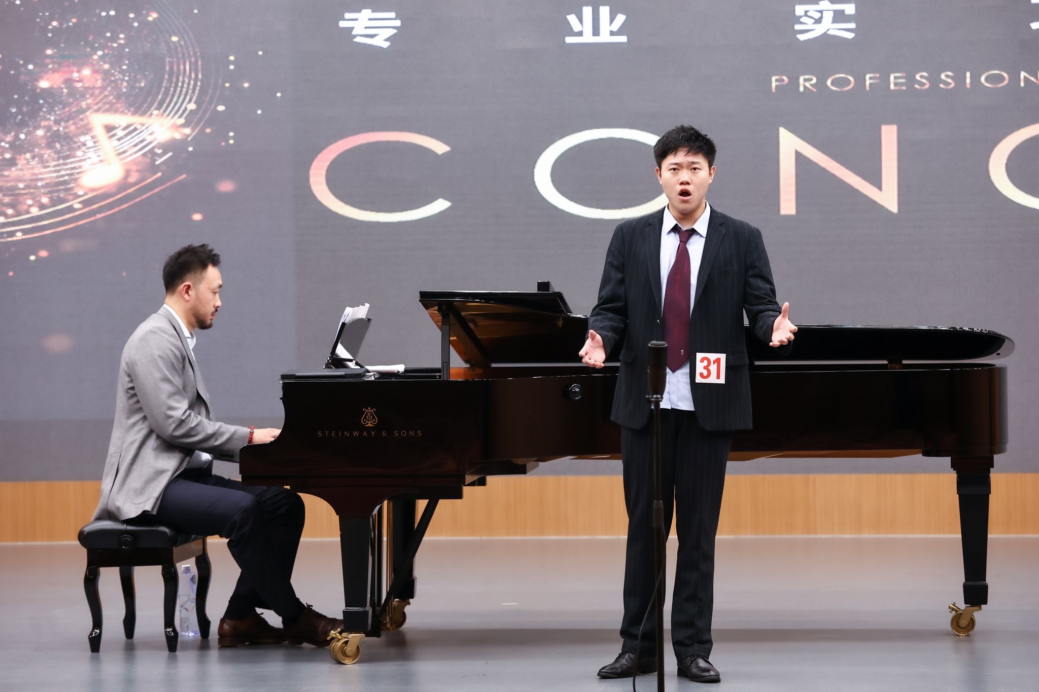 聲樂(lè)專(zhuān)場(chǎng)作為本次音樂(lè)會(huì)的重要組成部分,更是以“聲”動(dòng)人,盡顯風(fēng)采。學(xué)子們憑借扎實(shí)的聲樂(lè)功底,將藝術(shù)歌曲、民歌、歌劇選段等不同類(lèi)型的作品演繹得淋漓盡致。有的嗓音清亮婉轉(zhuǎn),將中國(guó)傳統(tǒng)聲樂(lè)作品的韻味與詩(shī)意完美呈現(xiàn);有的音色渾厚磁性,在演繹西方經(jīng)典歌劇選段時(shí)盡顯大氣與張力;還有的憑借細(xì)膩的情感表達(dá),讓每一句唱腔都充滿(mǎn)溫度,直抵人心,其中王薇、王靖杰、周華軒三位同學(xué)的演唱更是驚艷全場(chǎng)。王薇演唱的《小錘又泛曾行路》《邊境的小鳥(niǎo)》,將中國(guó)傳統(tǒng)聲樂(lè)作品的韻味與藝術(shù)歌曲的抒情性融合,嗓音清亮、咬字清晰,情感表達(dá)真摯動(dòng)人,展現(xiàn)出對(duì)不同風(fēng)格聲樂(lè)作品的良好駕馭能力。王靖杰在演唱中,憑借扎實(shí)的聲樂(lè)功底和對(duì)作品的深刻理解,將每一首歌曲的情感內(nèi)核精準(zhǔn)傳遞,其演唱的作品風(fēng)格跨度大,卻都能演繹得獨(dú)具特色,舞臺(tái)表現(xiàn)力極強(qiáng)。周華軒帶來(lái)的《大江東去》《思鄉(xiāng)》,以渾厚且富有磁性的嗓音,將古詩(shī)詞的豪邁與思鄉(xiāng)的柔情完美呈現(xiàn),在聲樂(lè)技巧與情感表達(dá)的結(jié)合上表現(xiàn)出色,讓觀眾深深沉醉在聲樂(lè)藝術(shù)的魅力之中。他們的精彩演唱,是聲樂(lè)專(zhuān)業(yè)實(shí)力的直觀體現(xiàn),也為本次系列音樂(lè)會(huì)畫(huà)上了圓滿(mǎn)的句號(hào)。