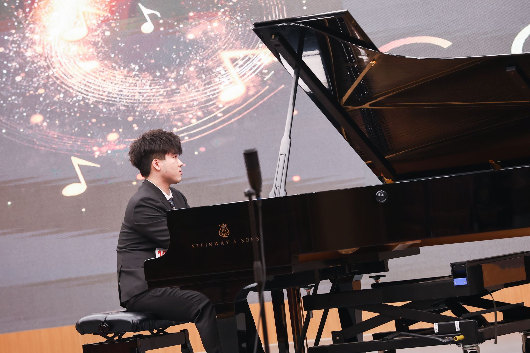 鋼琴專(zhuān)場(chǎng)的演出同樣精彩紛呈,黑白琴鍵在學(xué)子們的指尖下仿佛被賦予了生命,流淌出風(fēng)格各異的動(dòng)人旋律。從古典主義的嚴(yán)謹(jǐn)規(guī)整,到浪漫主義的抒情細(xì)膩,再到印象主義的朦朧靈動(dòng),學(xué)子們憑借極強(qiáng)的手指控制力與音樂(lè)表現(xiàn)力,在不同風(fēng)格的作品間自如切換。激昂處,琴音鏗鏘有力、節(jié)奏明快,盡顯張力;舒緩時(shí),旋律婉轉(zhuǎn)柔和、意境悠遠(yuǎn),引人遐想。黃昕垚、劉柯含、曾小維三位同學(xué)憑借出色表現(xiàn),成為全場(chǎng)焦點(diǎn)。黃昕垚演奏的《輕盈》(李斯特曲)與《革命練習(xí)曲》(肖邦曲),在快速的音階跑動(dòng)和強(qiáng)烈的節(jié)奏對(duì)比中,展現(xiàn)出極強(qiáng)的手指控制力和音樂(lè)表現(xiàn)力,將李斯特的靈動(dòng)與肖邦的激昂詮釋得淋漓盡致。劉柯含的《b小調(diào)第一諧謔曲》(肖邦曲),樂(lè)曲情緒的跌宕起伏被她精準(zhǔn)拿捏,從歡快到深沉的情感轉(zhuǎn)變自然流暢,盡顯肖邦作品的浪漫與詩(shī)意。曾小維帶來(lái)的《西風(fēng)所見(jiàn)》(德彪西曲)和《練習(xí)曲Op.25No.5》(肖邦曲),在德彪西的朦朧意境與肖邦的精巧技藝間自如切換,演奏風(fēng)格多樣且極具個(gè)人特色,讓觀眾充分感受到鋼琴藝術(shù)的多元魅力。三位同學(xué)的精彩演奏,是日復(fù)一日刻苦練習(xí)的成果,也體現(xiàn)了中外班鋼琴教學(xué)的高水平。