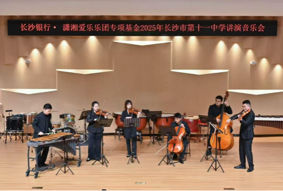 本次音樂會暨公益講座,既是湖南師范大學音樂學院履行社會責任、推動高雅藝術進校園的重要舉措,也是“長沙銀行·瀟湘愛樂樂團專項基金”支持藝術普及與教育事業(yè)的成果展現(xiàn)。特別感謝長沙市第十一中學的誠摯邀請與大力支持,為高校與中學間的藝術交流與美育共建提供了寶貴平臺。在兩校的攜手努力與社會各界的共同關注下,美育的種子必將在更多年輕心靈中生根發(fā)芽,絢爛綻放,持續(xù)為新時代藝術教育與人才培養(yǎng)注入蓬勃活力。