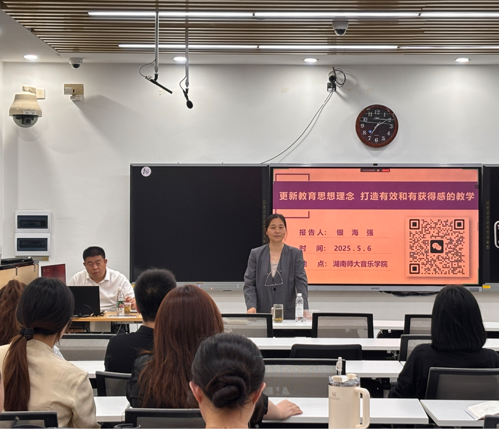 音樂學院相關(guān)負責人、各系主任、青年教師, 教育部師范教育協(xié)同提質(zhì)計劃湖南師范大學組高校湖南第一師范學院、懷化學院、寧夏師范大學、閩南師范大學的青年教師,湖南省高等學校“音樂與戲劇類教學指導(dǎo)委員會”委員及其所屬學院青年教師共計100余人參加講座。