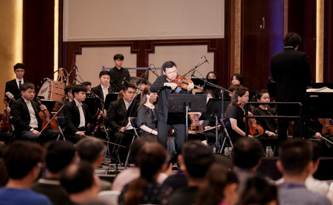 隨后,由學(xué)院名譽(yù)院長(zhǎng)趙季平創(chuàng)作的《第一小提琴協(xié)奏曲》在音樂(lè)會(huì)上震撼上演,學(xué)院教授柴亮擔(dān)任小提琴獨(dú)奏。柴亮以其卓越的演奏技巧和對(duì)作品的深刻理解,將小提琴的旋律線條與樂(lè)隊(duì)的交響織體完美融合,時(shí)而激情澎湃,時(shí)而細(xì)膩委婉,淋漓盡致地展現(xiàn)了作品的戲劇性與感染力。
