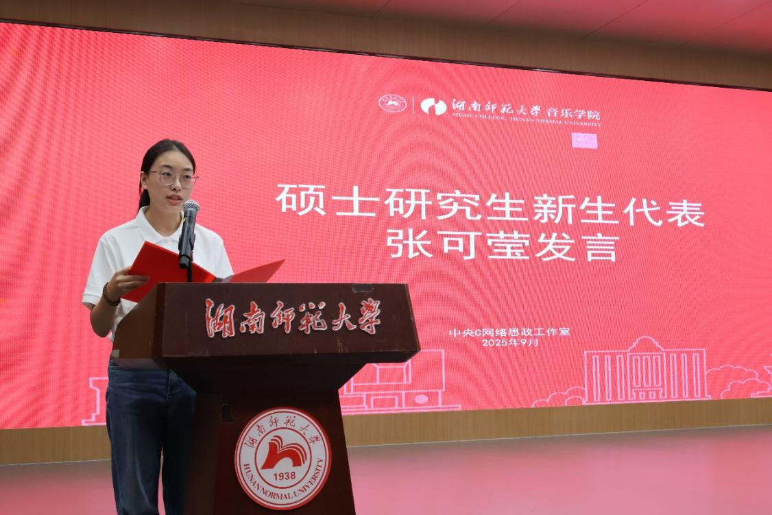 2025級(jí)研究生代表張可瑩發(fā)言。她以“仁愛(ài)”“精勤”的校訓(xùn)悟音樂(lè)真諦,展望研究生的新生活,期待在導(dǎo)師指導(dǎo)下提升。