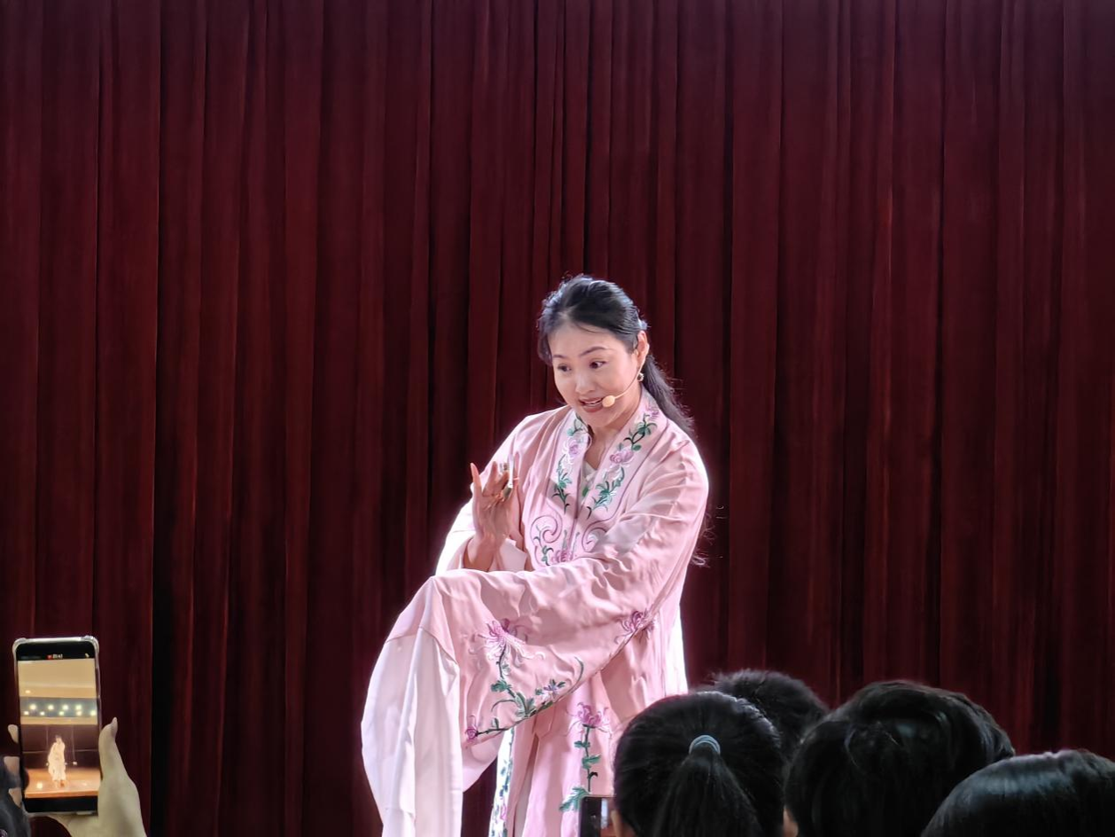 講座下半場,藝術(shù)家們通過現(xiàn)場表演展現(xiàn)了昆曲的藝術(shù)魅力。鄧建桃女士以清唱形式演繹《玉簪記·琴挑》,婉轉(zhuǎn)唱腔盡顯南曲的柔美;鄢輝亮老師則用笛子獨(dú)奏《牡丹亭·游園》,以北曲的高亢激昂詮釋杜麗娘的情思,南北曲交融的表演贏得陣陣掌聲。國家一級(jí)演員劉娜老師壓軸登場,獻(xiàn)唱《牡丹亭·尋夢》選段,其“聲、情、形”三位一體的表演,將昆曲“無聲不歌、無動(dòng)不舞”的美學(xué)特質(zhì)展現(xiàn)得淋漓盡致。